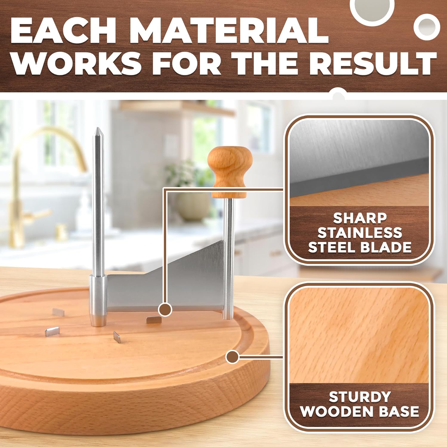 Our cheese curler features a stainless steel blade and a wood base that resists warping. The cheese curler flower maker wheel slicer has metal pins to secure cheese firmly.